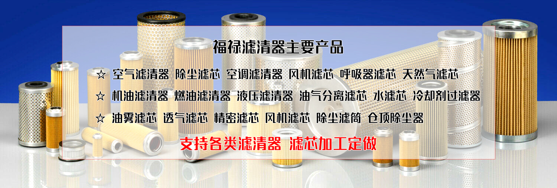 多年致力于濾清器、濾芯行業(yè)的研發(fā)、生產(chǎn)及銷售產(chǎn)品中心